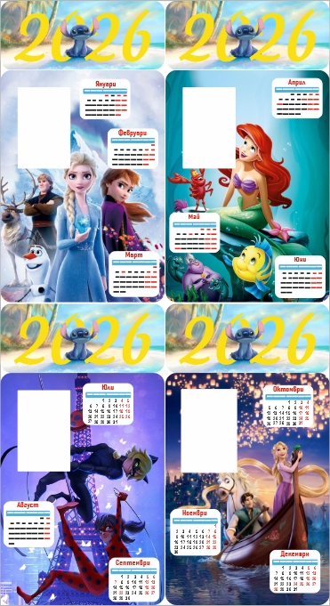 Детски четирилистен календар с възможност на всяка страница различна снимка на детето.
