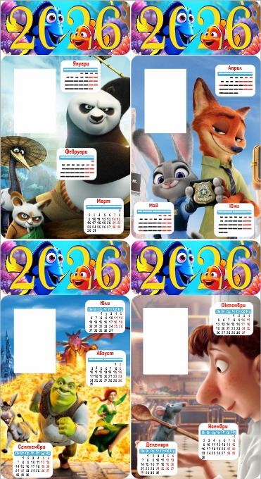 Детски четирилистен календар с възможност на всяка страница различна снимка на детето.