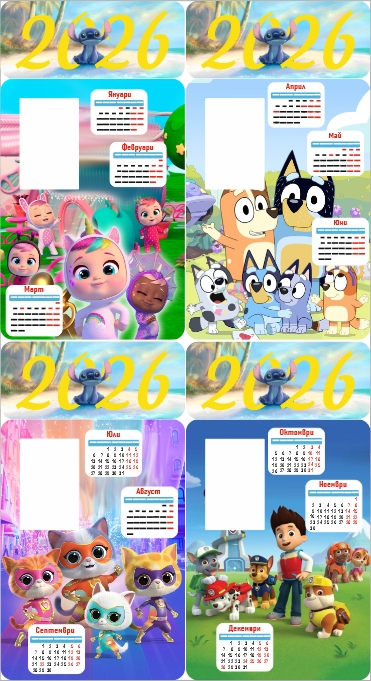Детски четирилистен календар с възможност на всяка страница различна снимка на детето.