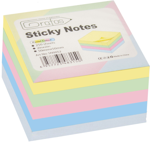 Самозалепващи листчета – кубче 50/50 мм. пастел, 250 листа